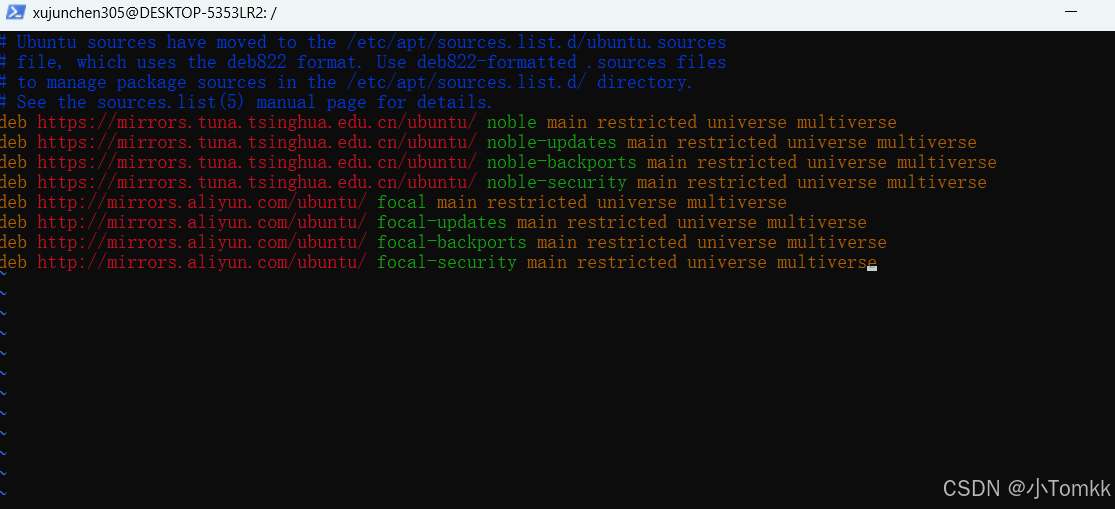deb https://mirrors.tuna.tsinghua.edu.cn/ubuntu/ focal main restricted universe multiverse deb https://mirrors.tuna.tsinghua.edu.cn/ubuntu/ focal-updates main restricted universe multiverse deb https://mirrors.tuna.tsinghua.edu.cn/ubuntu/ focal-backports main restricted universe multiverse deb https://mirrors.tuna.tsinghua.edu.cn/ubuntu/ focal-security main restricted universe multiverse