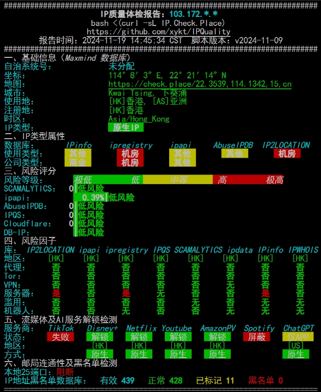流媒体检测脚本 admin • 2024年11月19日 上午12:00 • VPS评测 • 阅读 0 bash <(curl -Ls IP.Check.Place) 原创文章,作者:admin,如若转载,请注明出处:https://hostingchat.cn/3536.html CentOSLinuxLinux-技术分享网站ubuntu下载全球外贸交流分享国内外的最新linux技术应用命令安装操作系统 赞 (0) admin 0 0 生成海报 荫云yinnet上线韩国双ISP产品 折后价格低至$9.6/月 1G独享香港HKT产品仅$150/月 上一篇 2024年11月18日 上午12:00 HostDare黑五活动 美国VPS低至三五折 低至$9.1/年 下一篇 2024年11月19日 上午12:00 相关推荐 Domain三款虚拟主机方案对比 2020年8月11日 大带宽美国服务器哪家好用? 2023年10月18日 高防御美国服务器租用哪家好? 2022年3月29日 OneVPS怎么样 OneVPS日本评测 2020年8月11日 保护Megalayer香港服务器数据安全的有效方法 2020年8月11日 EasyCGI美国主机——专业windows主机服务商 2025年7月29日 美国云主机和云服务器的区别是什么? 2023年8月31日 LunarPages WordPress方案型主机介绍 2025年7月31日 美国服务器可以开启使用国内CDN加速吗? 2019年12月11日 萤光云俄罗斯VPS云服务器综合测评 2025年12月1日 发表回复 您的邮箱地址不会被公开。 必填项已用 * 标注*昵称: *邮箱: 网址: 记住昵称、邮箱和网址,下次评论免输入 提交