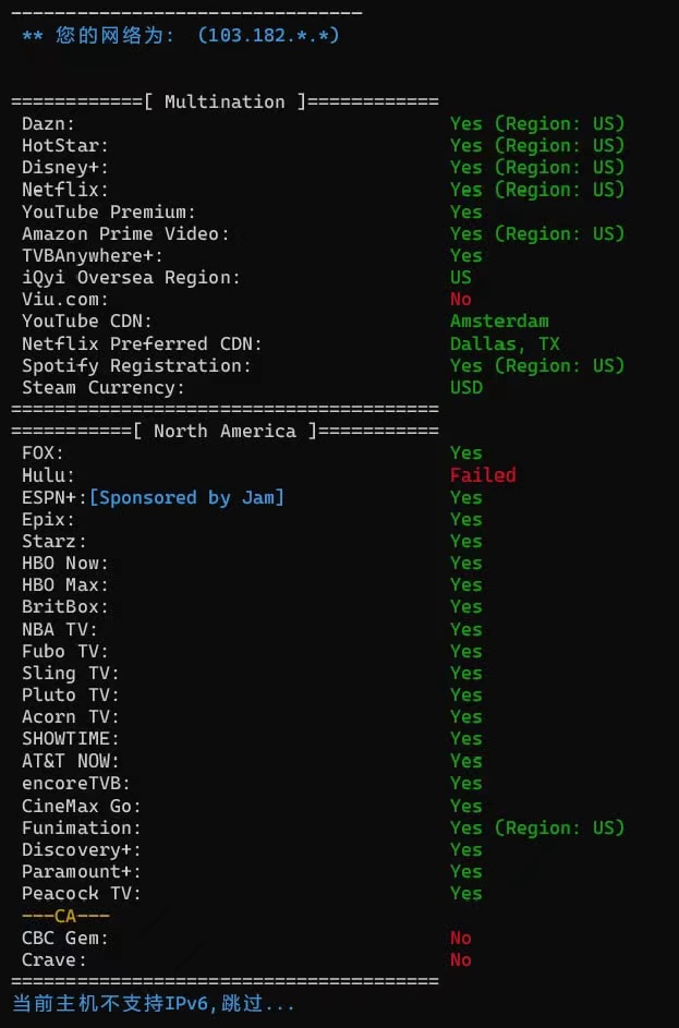 媒体测试如下:(客户真实环境测试:实际支持美区HULU解锁):
