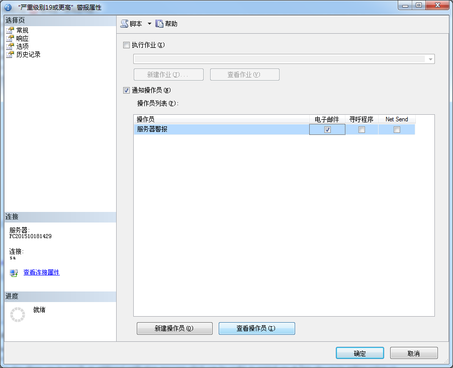 在运行的系统上,我们会期望至少存在2个操作员——一个作为紧急系统提醒(例如,我们刚定义的服务器警报操作员),另一个在SQL Server代理作业或常规错误上你会有的各自分工。