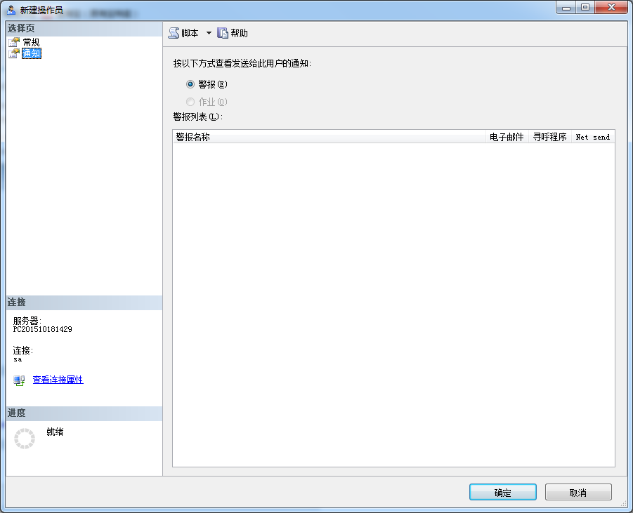 操作员当然也可以通过T-SQL脚本来创建。你可以使用sp_add_operator系统存储过程来创建操作员。语法上的帮助,可以参考在线帮助:https://msdn.microsoft.com/zh-cn/library/ms186747.aspx