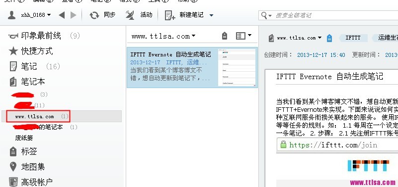 使用IFTTT里面的印象笔记(Evernote)频道,你能够创建和分享各种可以自动生成笔记、同步内容、归档数据等等任务的规则。如:
